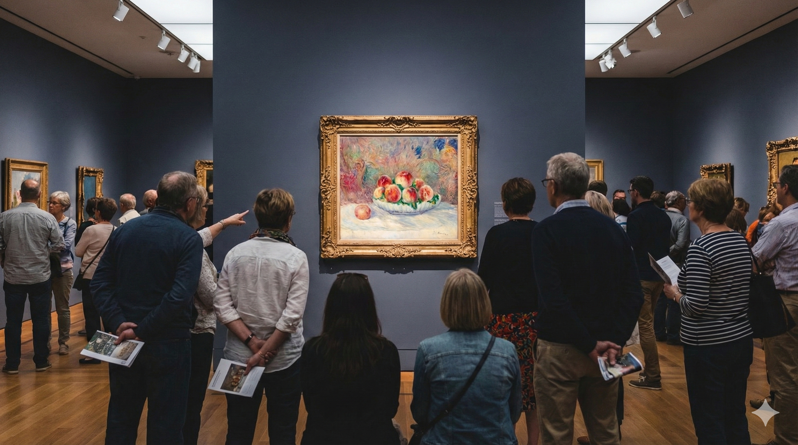 첫째, 가까이, 그리고 멀리서 보세요. 가까이서는 붓질과 색의 변화가 보입니다. 멀리서는 형태와 전체적 조화가 보입니다. 인상주의 그림은 거리에 따라 완전히 다른 그림이 됩니다.