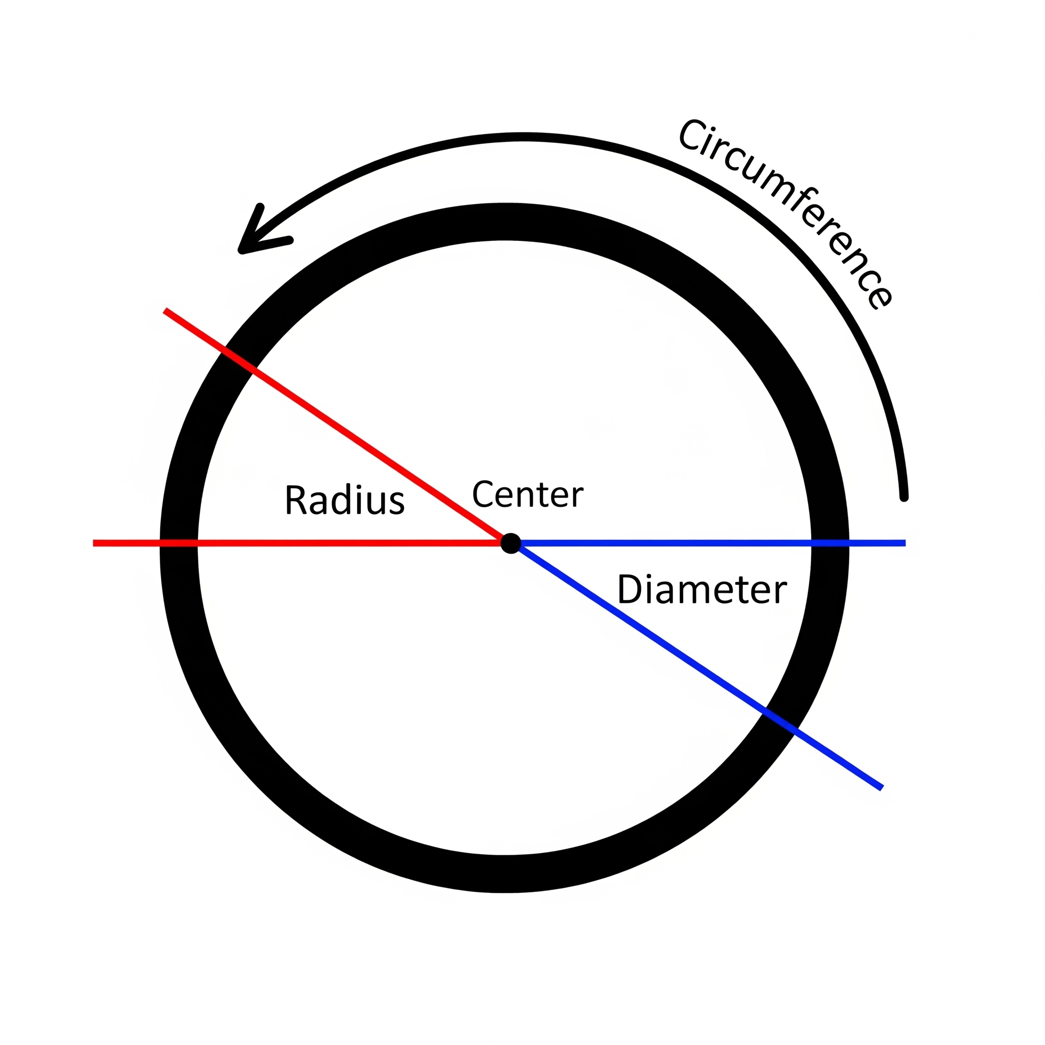 원은 평면 위의 한 점(원의 중심)에서부터 같은 거리에 있는 모든 점들을 연결하여 만든 곡선을 말해요. 여러분이 컴퍼스로 원을 그릴 때, 컴퍼스 침이 꽂힌 곳이 '원의 중심'이 되고, 연필 끝이 원을 그리며 지나가는 모든 점이 중심에서 같은 거리에 있답니다.